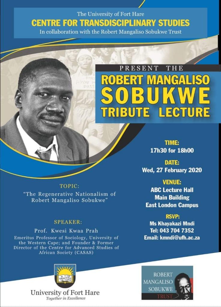 This day, 27 February 2020, mark 42 years since the death of the Founding President of PAC, “Prof” Mangaliso Sobukwe. Fort Hare University in collaboration with Robert Mangaliso Sobukwe Trust will have a memorial lecture and PAC will hold various activities to honor him.